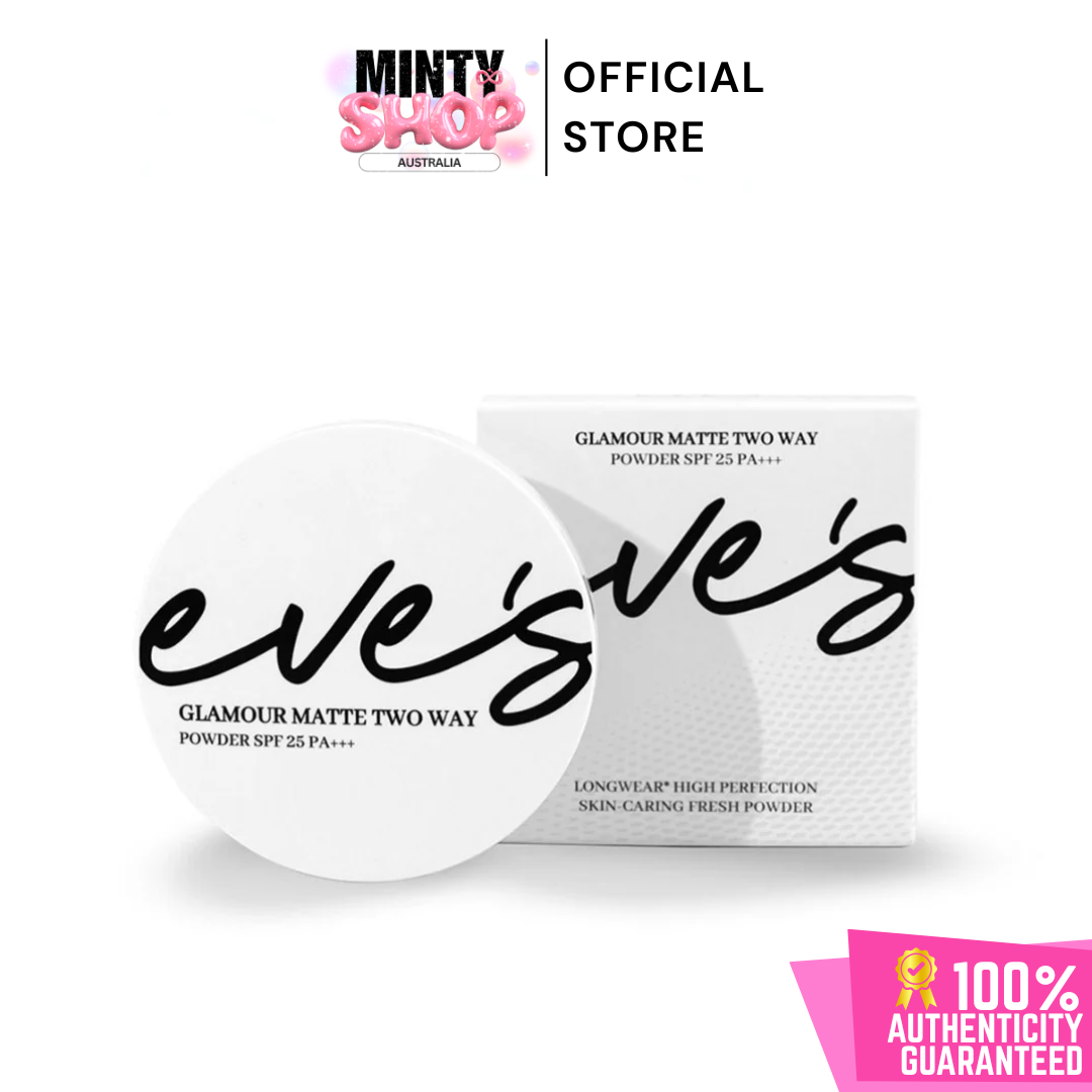 EVE’S Glamour Matte Two Way Powder SPF 25 PA+++ แป้งผสมรองพื้นเนื้อเนียนนุ่ม ให้ความรู้สึกเบาสบายผิว แต่ปกปิดได้อย่างมีประสิทธิภาพ ช่วยให้ผิวเรียบเนียนและเครื่องสำอางติดทนนาน ควบคุมความมันและป้องกันผิวหมองคล้ำระหว่างวัน พร้อมปกป้องผิวจากการสูญเสียความชุ่มชื้น และแสงแดดด้วย SPF 25 PA+++ ลดความเสี่ยงของการเกิดริ้วรอยก่อนวัย เหมาะสำหรับผู้ที่ต้องการผิวสวยเนียนแมตต์ยาวนานตลอดวัน