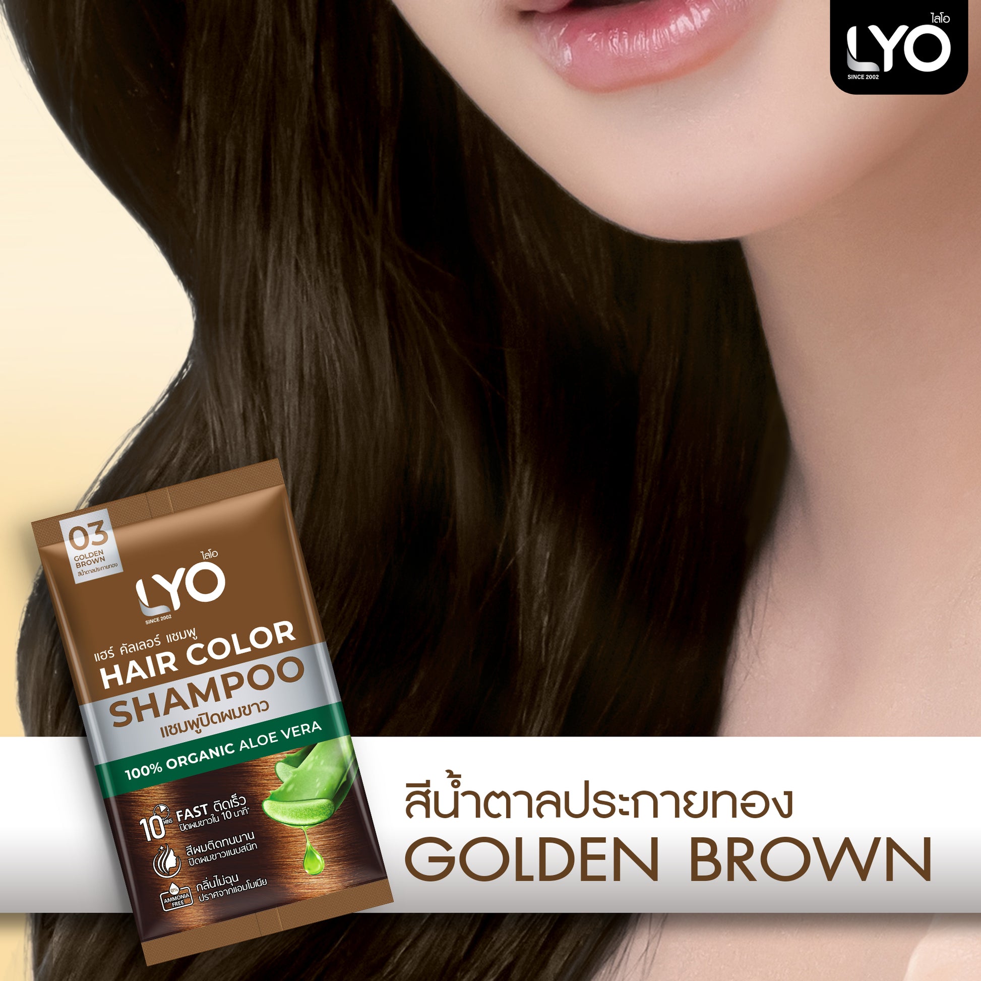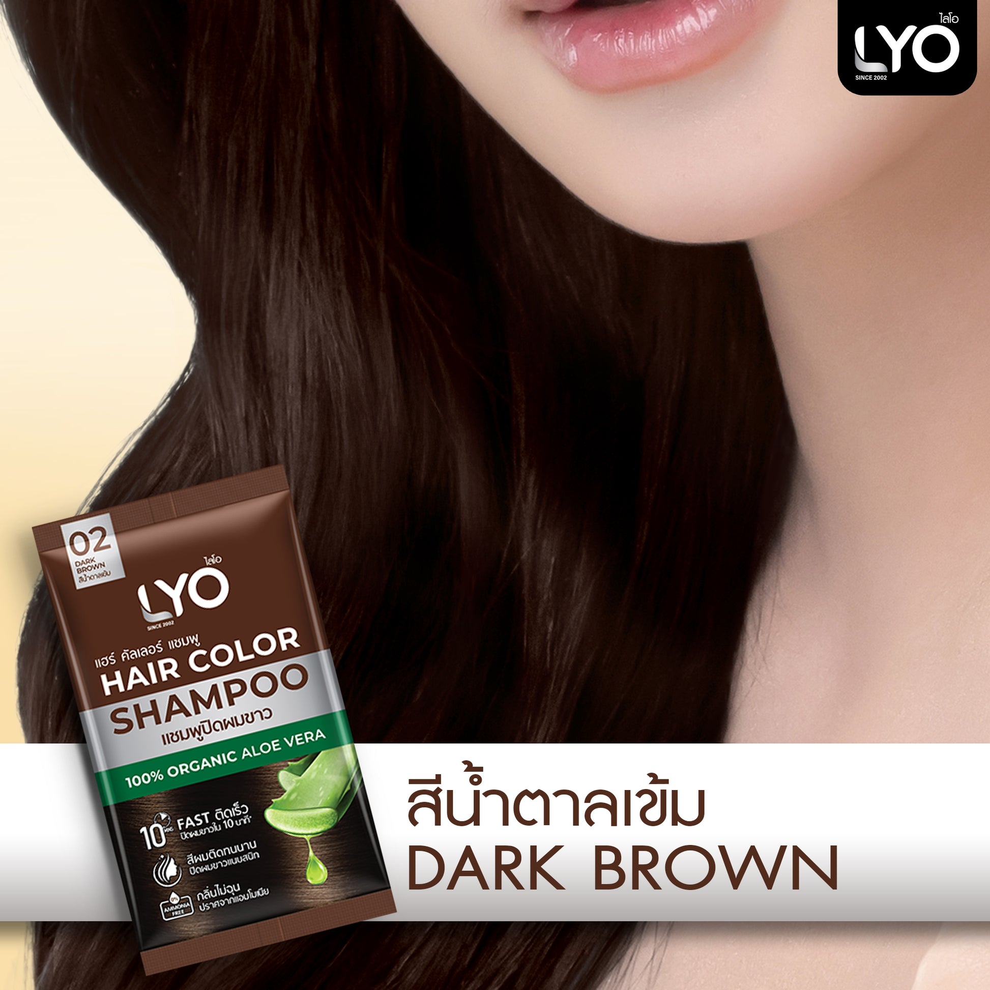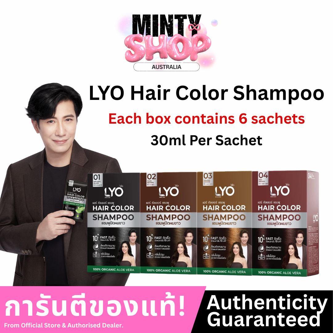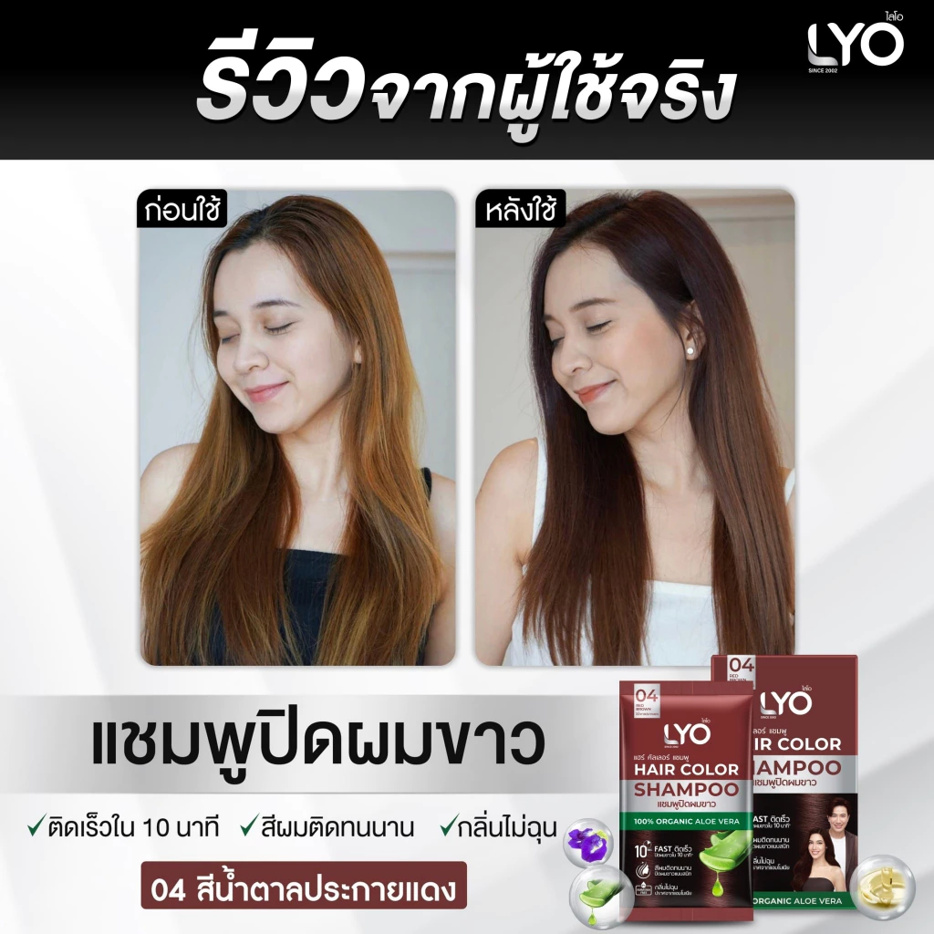 LYO แฮร์ คัลเลอร์ แชมพู แชมพูปิดผมขาวที่ใช้สะดวก ให้สีผมดูเป็นธรรมชาติภายใน 10 นาที ผสานสารสกัดจากว่านหางจระเข้ อัญชัน และน้ำมันมะพร้าว ช่วยบำรุงเส้นผมให้นุ่มสลวย เงางาม ไม่แห้งเสีย พร้อมเทคโนโลยี CHROMAPOL COLORPOP จากสหรัฐอเมริกา ล็อกสีผมให้ติดทนนาน แม้สระบ่อยได้ถึง 30 ครั้ง มีให้เลือก 4 เฉดสี: