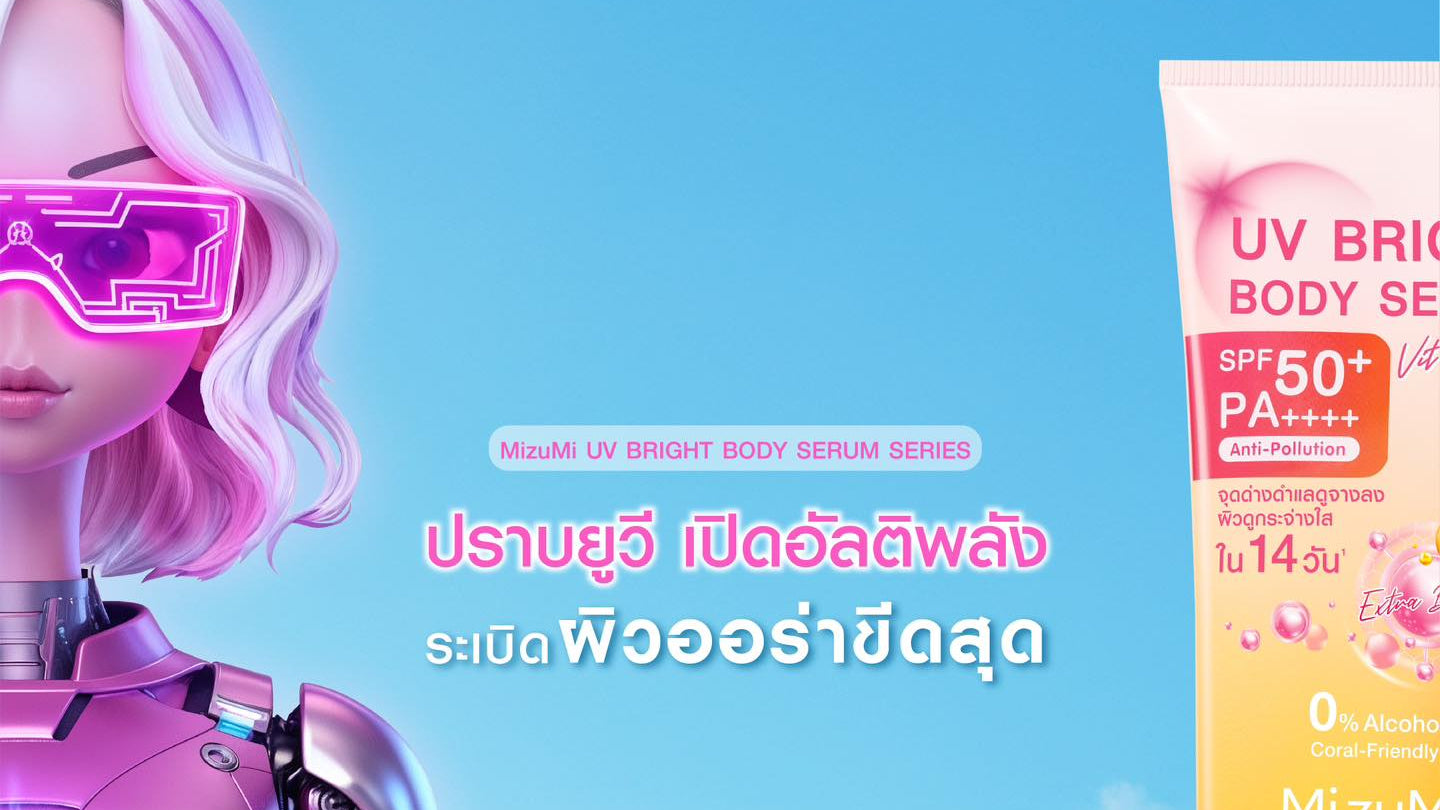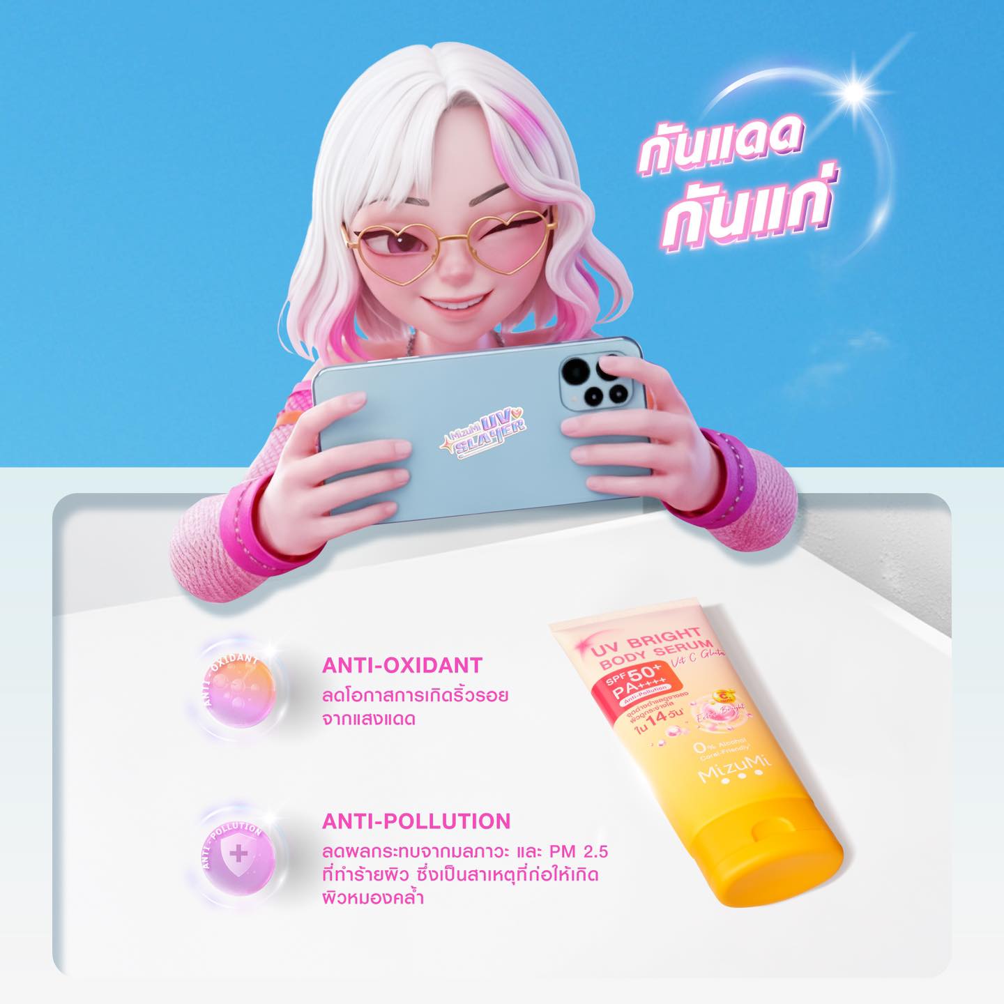 MizuMi UV Bright Body Serum Vit C Gluta บอดี้เซรั่มกันแดดเนื้อบางเบา เกลี่ยง่าย ซึมไว ไม่ทิ้งคราบขาว ช่วยปกป้องผิวจากรังสี UVA/UVB และมลภาวะ ผสาน C Bright Sphere และ Glutathione ช่วยให้ผิวดูเรียบเนียน สีผิวดูสม่ำเสมอ และแลดูสดใสขึ้น