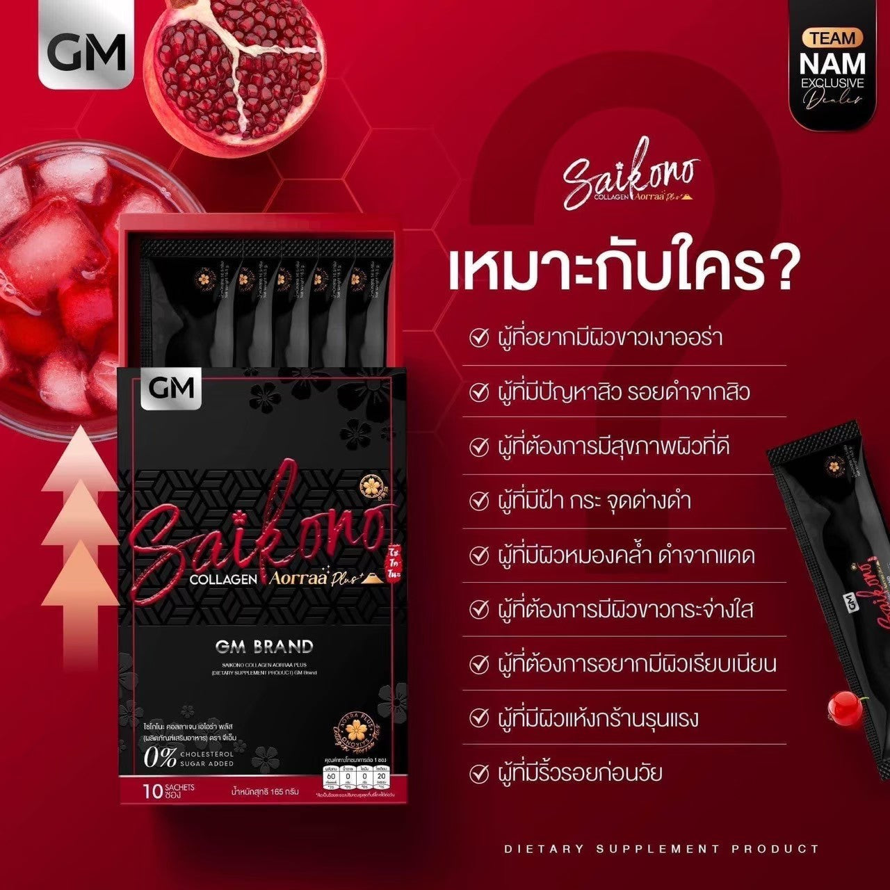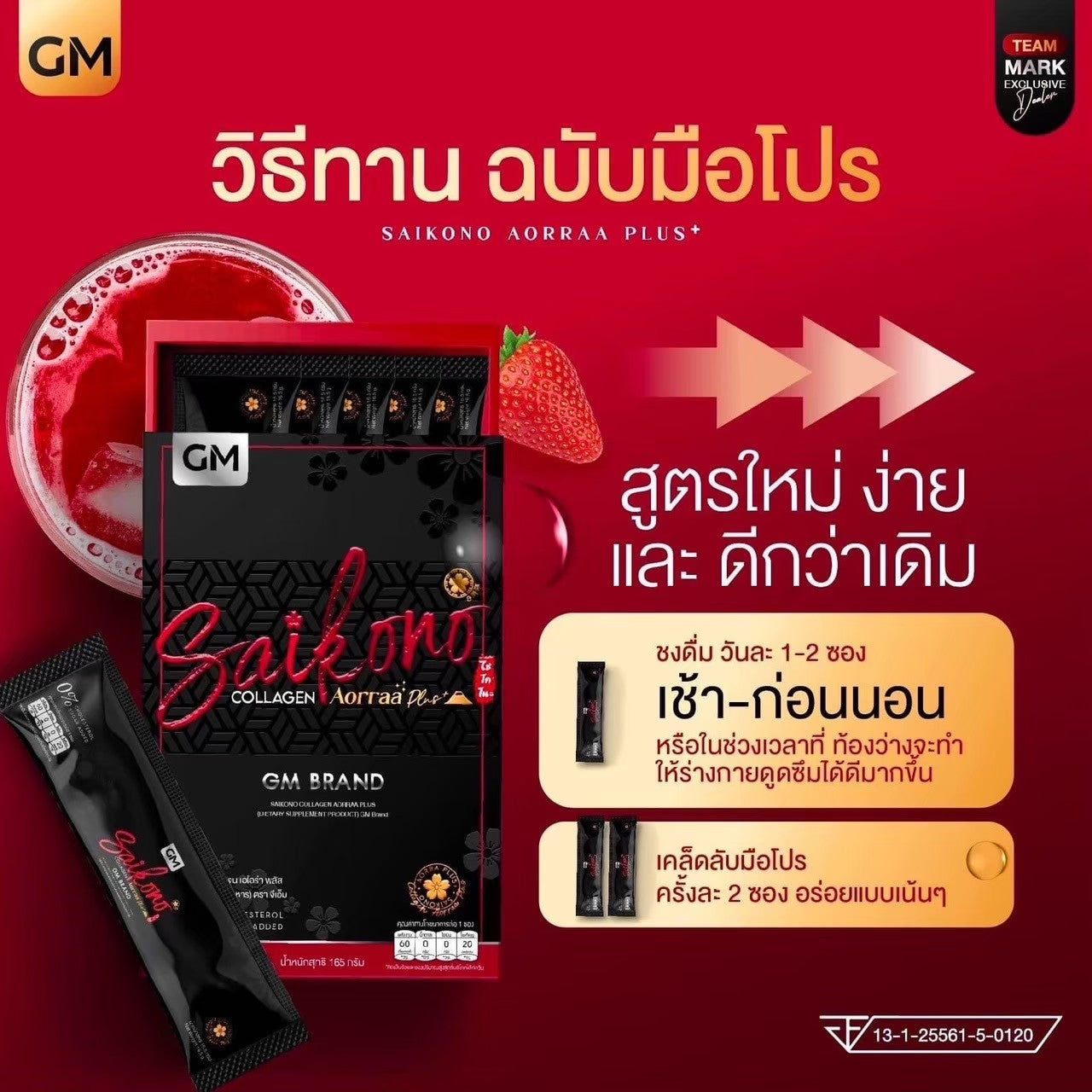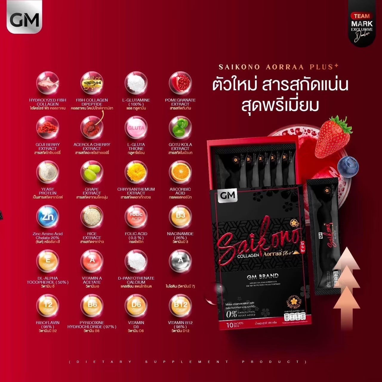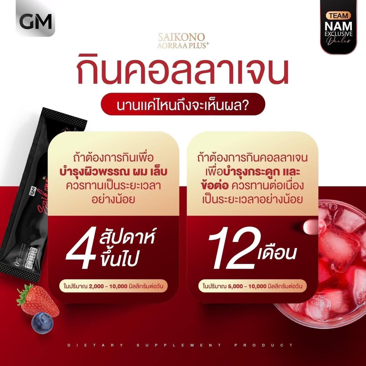 SAIKONO Collagen AORRAA คอลลาเจนคุณภาพพรีเมียม ผลิตจากวัตถุดิบนำเข้าจากญี่ปุ่น ในหนึ่งซองประกอบด้วยคอลลาเจน 3 ชนิด (Dipeptide, Hydrolyzed, Peptide) ช่วยบำรุงผิวให้ยืดหยุ่น ชุ่มชื้น และดูสุขภาพดีอย่างเป็นธรรมชาติ ปราศจากน้ำตาล เหมาะสำหรับการดื่มทุกวัน เพื่อผิวเนียนใส กระจ่างใส