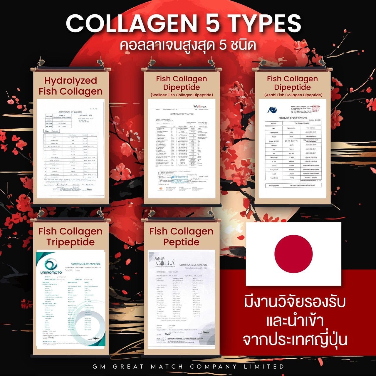 - คอลลาเจน 3 ชนิด (Dipeptide, Hydrolyzed, Peptide)